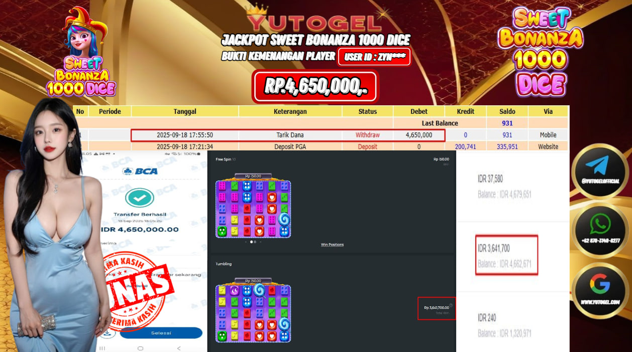 Selamat kepada User id : ZYN*** Bukti Pembayaran Kemenangan 4.650,000 permainan SLOT PRAGMATIC PLAY USER ID : ZYN*** LUNAS!!! Telah berhasil mendapatkan kemenangan besar pada JACKPOT PERMAINAN PRAGMATIC PLAY , RP 4.650,000,- LUNAS . Setelah mengisi formulir withdraw dengan kurung waktu hanya 5 – 10 menit pihak YUTOGEL sudah melakukan transfer kepada pemilik Userid dan dana sudah dapat dicairkan oleh pemenang. Bukti pembayaran yang kami berikan merupakan bukti pembayaran yang SAH/VALID yang langsung di dapatkan melalui tanda transfer transaksi dari Bank yang dituju.