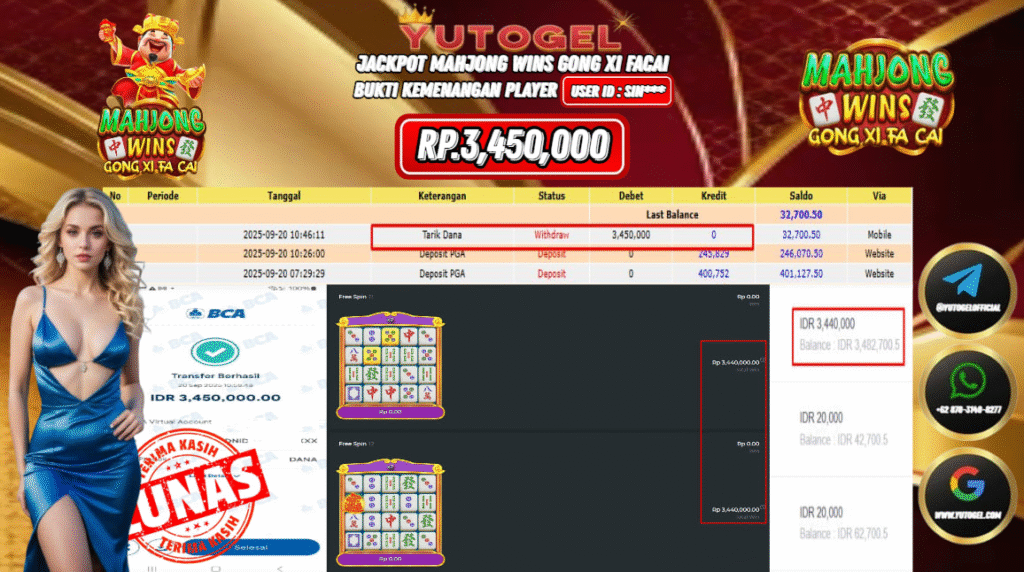 Selamat kepada User id : SIN*** Bukti Pembayaran Kemenangan 3.450,000 permainan SLOT PRAGMATIC PLAY USER ID : SIN*** LUNAS!!! Telah berhasil mendapatkan kemenangan besar pada JACKPOT PERMAINAN PRAGMATIC PLAY , RP 3.450,000,- LUNAS . Setelah mengisi formulir withdraw dengan kurung waktu hanya 5 – 10 menit pihak YUTOGEL sudah melakukan transfer kepada pemilik Userid dan dana sudah dapat dicairkan oleh pemenang. Bukti pembayaran yang kami berikan merupakan bukti pembayaran yang SAH/VALID yang langsung di dapatkan melalui tanda transfer transaksi dari Bank yang dituju.