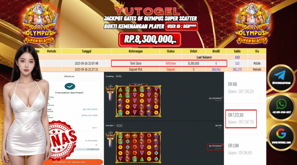 Selamat kepada User id : DEN*** Bukti Pembayaran Kemenangan 8.300,000 permainan SLOT PRAGMATIC PLAY USER ID : DEN*** LUNAS!!!  Telah berhasil mendapatkan kemenangan besar pada JACKPOT PERMAINAN PRAGMATIC PLAY , RP 8.300,000,- LUNAS . Setelah mengisi formulir withdraw dengan kurung waktu hanya 5 – 10 menit pihak  YUTOGEL sudah melakukan transfer kepada pemilik Userid dan dana sudah dapat dicairkan oleh pemenang. Bukti pembayaran yang kami berikan merupakan bukti pembayaran yang SAH/VALID yang langsung di dapatkan melalui tanda transfer transaksi dari Bank yang dituju.