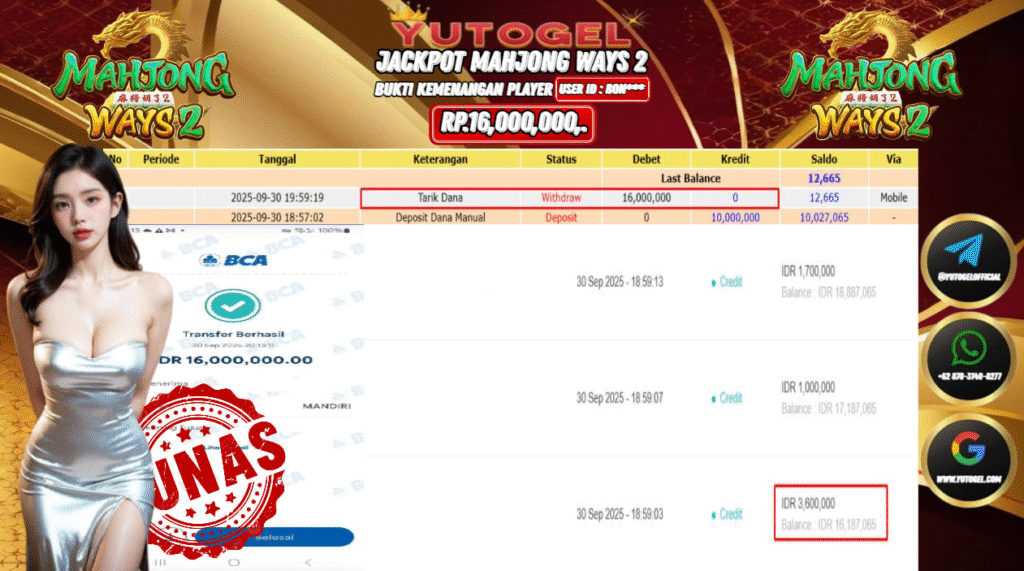 Selamat kepada User id : BON*** Bukti Pembayaran Kemenangan 16.000,000 permainan SLOT POCKET GAME SOFT USER ID : BON*** LUNAS!!!  Telah berhasil mendapatkan kemenangan besar pada JACKPOT PERMAINAN POCKET GAME SOFT , RP 16.000,000,- LUNAS . Setelah mengisi formulir withdraw dengan kurung waktu hanya 5 – 10 menit pihak  YUTOGEL sudah melakukan transfer kepada pemilik Userid dan dana sudah dapat dicairkan oleh pemenang. Bukti pembayaran yang kami berikan merupakan bukti pembayaran yang SAH/VALID yang langsung di dapatkan melalui tanda transfer transaksi dari Bank yang dituju.