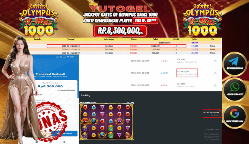 Selamat kepada User id : RIA*** Bukti Pembayaran Kemenangan 8.300,000 permainan SLOT PRAGMATIC PLAY USER ID : RIA*** LUNAS!!! Telah berhasil mendapatkan kemenangan besar pada JACKPOT PERMAINAN PRAGMATIC PLAY , RP 8.300,000,- LUNAS . Setelah mengisi formulir withdraw dengan kurung waktu hanya 5 – 10 menit pihak YUTOGEL sudah melakukan transfer kepada pemilik Userid dan dana sudah dapat dicairkan oleh pemenang. Bukti pembayaran yang kami berikan merupakan bukti pembayaran yang SAH/VALID yang langsung di dapatkan melalui tanda transfer transaksi dari Bank yang dituju.