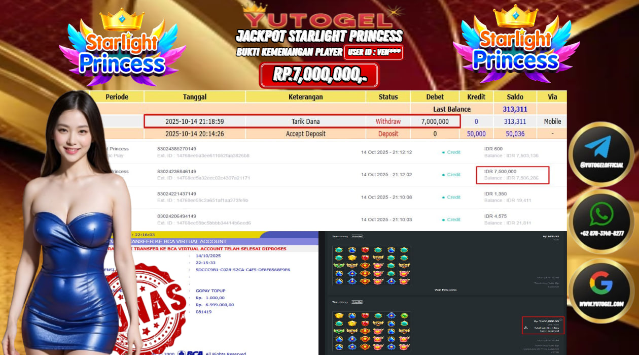 Selamat kepada User id : VEN*** Bukti Pembayaran Kemenangan 7.000,000 permainan SLOT PRAGMATIC PLAY USER ID : VEN*** LUNAS!!!  Telah berhasil mendapatkan kemenangan besar pada JACKPOT PERMAINAN PRAGMATIC PLAY , RP 7.000,000,- LUNAS . Setelah mengisi formulir withdraw dengan kurung waktu hanya 5 – 10 menit pihak  YUTOGEL sudah melakukan transfer kepada pemilik Userid dan dana sudah dapat dicairkan oleh pemenang. Bukti pembayaran yang kami berikan merupakan bukti pembayaran yang SAH/VALID yang langsung di dapatkan melalui tanda transfer transaksi dari Bank yang dituju.