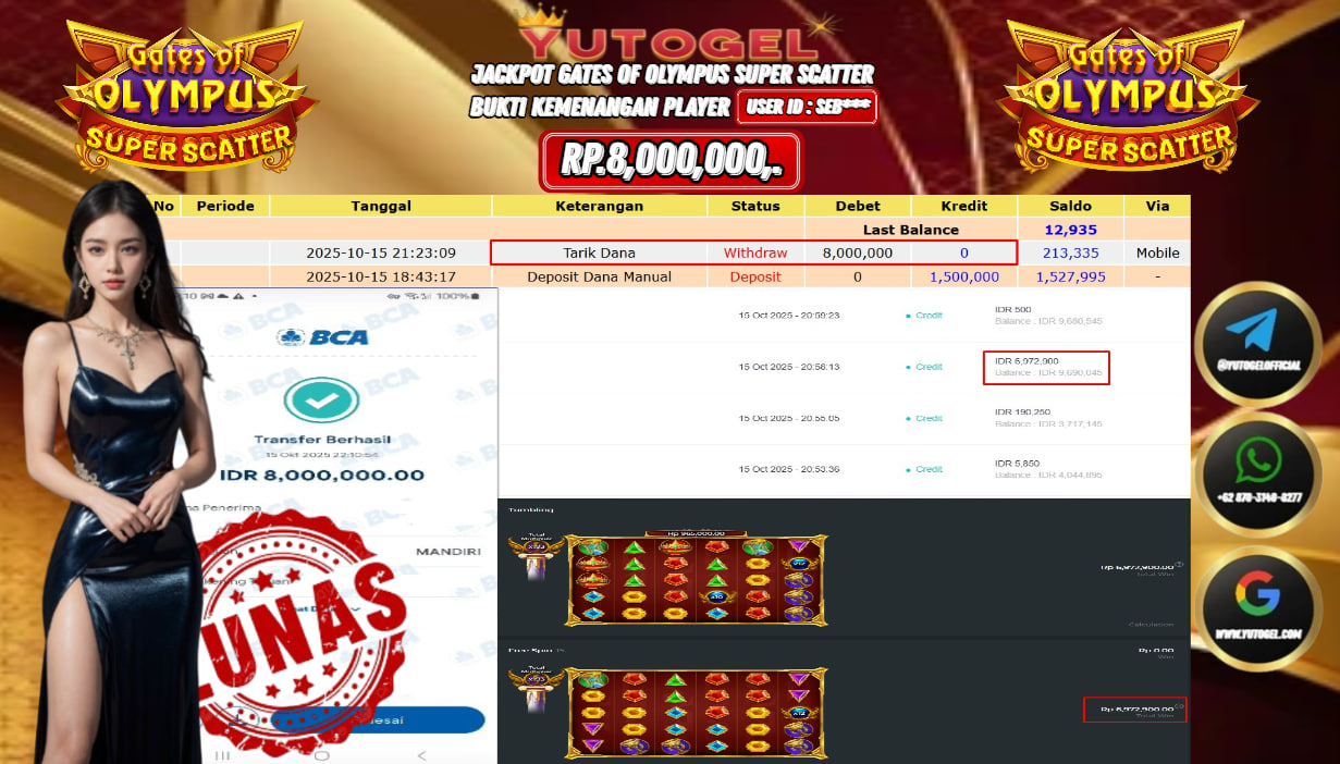 Selamat kepada User id : SEB*** Bukti Pembayaran Kemenangan 8.000,000 permainan SLOT PRAGMATIC PLAY USER ID : SEB*** LUNAS!!! Telah berhasil mendapatkan kemenangan besar pada JACKPOT PERMAINAN PRAGMATIC PLAY , RP 8.000,000,- LUNAS . Setelah mengisi formulir withdraw dengan kurung waktu hanya 5 – 10 menit pihak YUTOGEL sudah melakukan transfer kepada pemilik Userid dan dana sudah dapat dicairkan oleh pemenang. Bukti pembayaran yang kami berikan merupakan bukti pembayaran yang SAH/VALID yang langsung di dapatkan melalui tanda transfer transaksi dari Bank yang dituju.