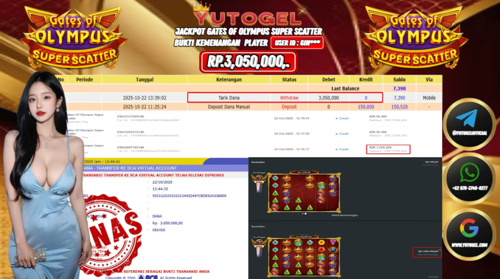 Selamat kepada User id : GIN*** Bukti Pembayaran Kemenangan 3.050,000 permainan SLOT PRAGMATIC PLAY USER ID : GIN*** LUNAS!!!  Telah berhasil mendapatkan kemenangan besar pada JACKPOT PERMAINAN PRAGMATIC PLAY , RP 3.050,000,- LUNAS . Setelah mengisi formulir withdraw dengan kurung waktu hanya 5 – 10 menit pihak  YUTOGEL sudah melakukan transfer kepada pemilik Userid dan dana sudah dapat dicairkan oleh pemenang. Bukti pembayaran yang kami berikan merupakan bukti pembayaran yang SAH/VALID yang langsung di dapatkan melalui tanda transfer transaksi dari Bank yang dituju.