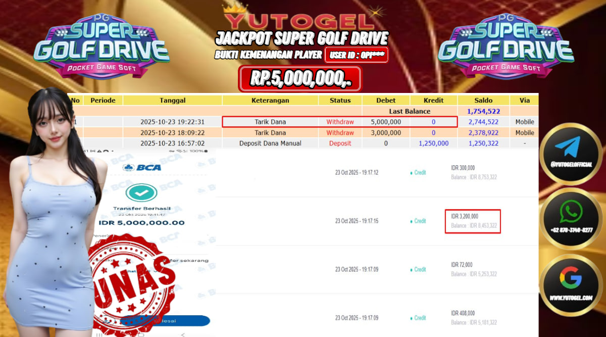 Selamat kepada User id : OPI*** Bukti Pembayaran Kemenangan 5.000,000 permainan SLOT POCKET GAME SOFT USER ID : OPI*** LUNAS!!! Telah berhasil mendapatkan kemenangan besar pada JACKPOT PERMAINAN POCKET GAME SOFT , RP 5.000,000,- LUNAS . Setelah mengisi formulir withdraw dengan kurung waktu hanya 5 – 10 menit pihak YUTOGEL sudah melakukan transfer kepada pemilik Userid dan dana sudah dapat dicairkan oleh pemenang. Bukti pembayaran yang kami berikan merupakan bukti pembayaran yang SAH/VALID yang langsung di dapatkan melalui tanda transfer transaksi dari Bank yang dituju.