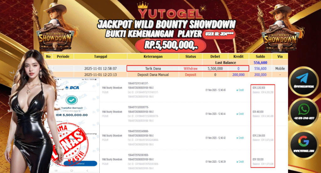 Selamat kepada User id : JEM*** Bukti Pembayaran Kemenangan 5.500,000 permainan SLOT PG SOFT USER ID : JEM*** LUNAS!!! Telah berhasil mendapatkan kemenangan besar pada JACKPOT PERMAINAN PG SOFT , RP 5.500,000,- LUNAS . Setelah mengisi formulir withdraw dengan kurung waktu hanya 5 – 10 menit pihak YUTOGEL sudah melakukan transfer kepada pemilik Userid dan dana sudah dapat dicairkan oleh pemenang. Bukti pembayaran yang kami berikan merupakan bukti pembayaran yang SAH/VALID yang langsung di dapatkan melalui tanda transfer transaksi dari Bank yang dituju.