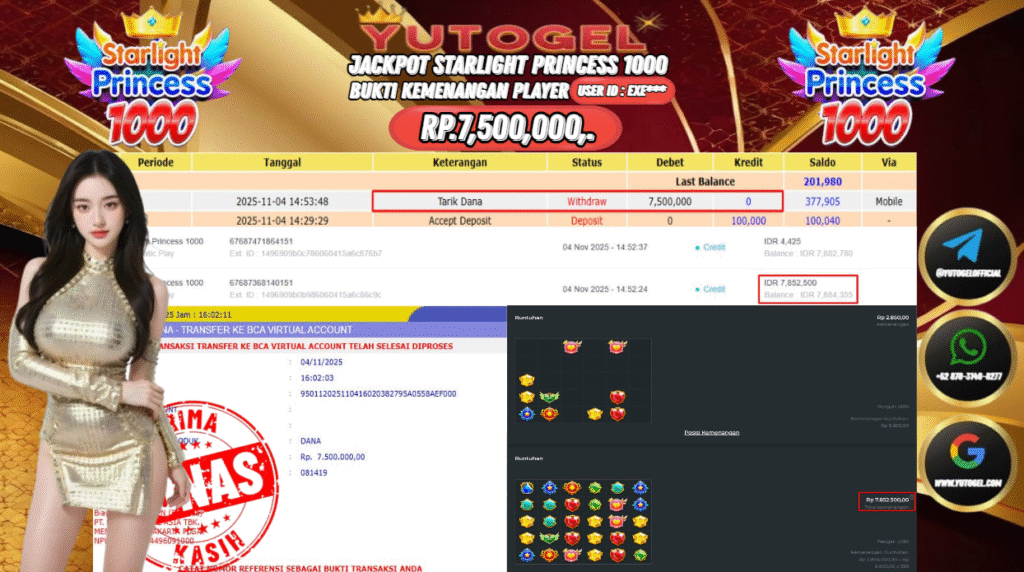 Selamat kepada User id : EXE*** Bukti Pembayaran Kemenangan 7.500,000 permainan SLOT PRAGMATIC PLAY USER ID : EXE*** LUNAS!!!  Telah berhasil mendapatkan kemenangan besar pada JACKPOT PERMAINAN PRAGMATIC PLAY , RP 7.500,000,- LUNAS . Setelah mengisi formulir withdraw dengan kurung waktu hanya 5 – 10 menit pihak  YUTOGEL sudah melakukan transfer kepada pemilik Userid dan dana sudah dapat dicairkan oleh pemenang. Bukti pembayaran yang kami berikan merupakan bukti pembayaran yang SAH/VALID yang langsung di dapatkan melalui tanda transfer transaksi dari Bank yang dituju.