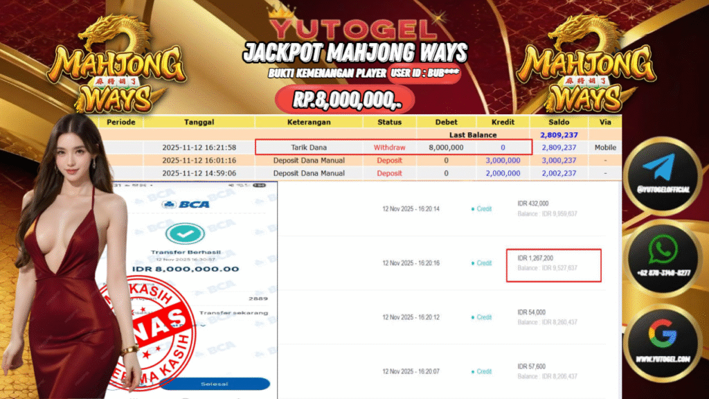 Selamat kepada User id : ITO*** Bukti Pembayaran Kemenangan 7.170,000 permainan SLOT PG SOFT USER ID : ITO*** LUNAS!!! Telah berhasil mendapatkan kemenangan besar pada JACKPOT PERMAINAN PG SOFT , RP 7.170,000,- LUNAS . Setelah mengisi formulir withdraw dengan kurung waktu hanya 5 – 10 menit pihak YUTOGEL sudah melakukan transfer kepada pemilik User id dan dana sudah dapat dicairkan oleh pemenang. Bukti pembayaran yang kami berikan merupakan bukti pembayaran yang SAH/VALID yang langsung di dapatkan melalui tanda transfer transaksi dari Bank yang dituju.