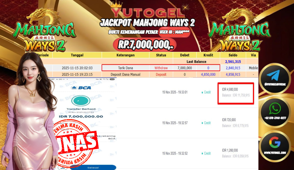 Selamat kepada User id : MAM*** Bukti Pembayaran Kemenangan 7.000,000 permainan SLOT PG SOFT USER ID : MAM*** LUNAS!!!  Telah berhasil mendapatkan kemenangan besar pada JACKPOT PERMAINAN PG SOFT , RP 7.00,000,- LUNAS . Setelah mengisi formulir withdraw dengan kurung waktu hanya 5 – 10 menit pihak  YUTOGEL sudah melakukan transfer kepada pemilik User id dan dana sudah dapat dicairkan oleh pemenang. Bukti pembayaran yang kami berikan merupakan bukti pembayaran yang SAH/VALID yang langsung di dapatkan melalui tanda transfer transaksi dari Bank yang dituju.