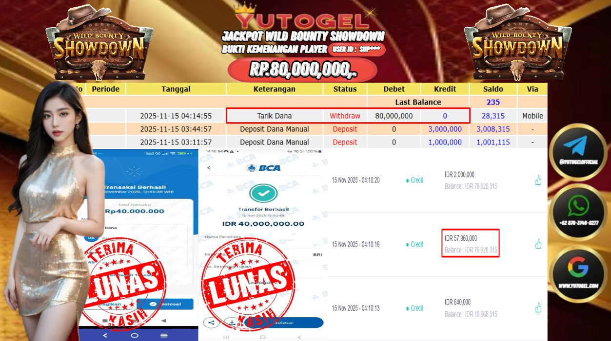 Selamat kepada User id : SUP*** Bukti Pembayaran Kemenangan 80.000,000 permainan SLOT PG SOFT USER ID : SUP*** LUNAS!!! Telah berhasil mendapatkan kemenangan besar pada JACKPOT PERMAINAN PG SOFT , RP 80.00,000,- LUNAS . Setelah mengisi formulir withdraw dengan kurung waktu hanya 5 – 10 menit pihak YUTOGEL sudah melakukan transfer kepada pemilik User id dan dana sudah dapat dicairkan oleh pemenang. Bukti pembayaran yang kami berikan merupakan bukti pembayaran yang SAH/VALID yang langsung di dapatkan melalui tanda transfer transaksi dari Bank yang dituju.