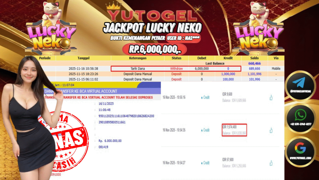 Selamat kepada User id : NAS*** Bukti Pembayaran Kemenangan 6.000,000 permainan SLOT PG SOFT USER ID : NAS*** LUNAS!!!  Telah berhasil mendapatkan kemenangan besar pada JACKPOT PERMAINAN PG SOFT , RP 6.00,000,- LUNAS . Setelah mengisi formulir withdraw dengan kurung waktu hanya 5 – 10 menit pihak  YUTOGEL sudah melakukan transfer kepada pemilik User id dan dana sudah dapat dicairkan oleh pemenang. Bukti pembayaran yang kami berikan merupakan bukti pembayaran yang SAH/VALID yang langsung di dapatkan melalui tanda transfer transaksi dari Bank yang dituju.