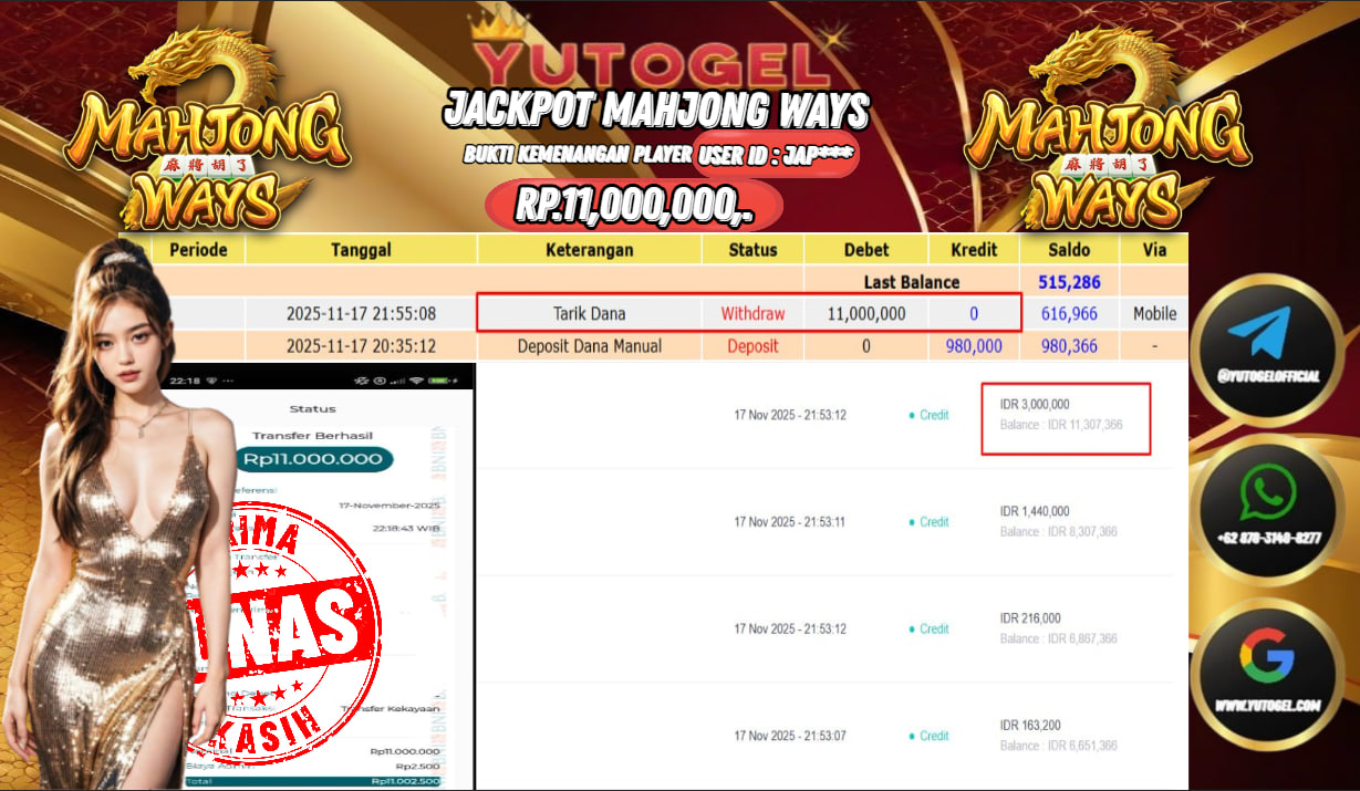 Selamat kepada User id : JAP*** Bukti Pembayaran Kemenangan 11.000,000 permainan SLOT PG SOFT USER ID : JAP*** LUNAS!!! Telah berhasil mendapatkan kemenangan besar pada JACKPOT PERMAINAN PG SOFT , RP 11.00,000,- LUNAS . Setelah mengisi formulir withdraw dengan kurung waktu hanya 5 – 10 menit pihak YUTOGEL sudah melakukan transfer kepada pemilik User id dan dana sudah dapat dicairkan oleh pemenang. Bukti pembayaran yang kami berikan merupakan bukti pembayaran yang SAH/VALID yang langsung di dapatkan melalui tanda transfer transaksi dari Bank yang dituju.
