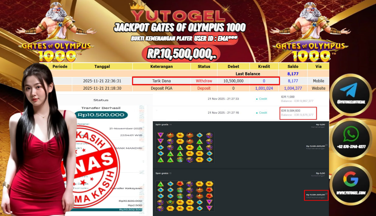 Selamat kepada User id : EMA*** Bukti Pembayaran Kemenangan 10.500,000 permainan SLOT PRAGMATIC PLAY USER ID : EMA*** LUNAS!!!  Telah berhasil mendapatkan kemenangan besar pada JACKPOT PERMAINAN PRAGMATIC PLAY , RP 10.500,000,- LUNAS . Setelah mengisi formulir withdraw dengan kurung waktu hanya 5 – 10 menit pihak  YUTOGEL sudah melakukan transfer kepada pemilik User id dan dana sudah dapat dicairkan oleh pemenang. Bukti pembayaran yang kami berikan merupakan bukti pembayaran yang SAH/VALID yang langsung di dapatkan melalui tanda transfer transaksi dari Bank yang dituju.