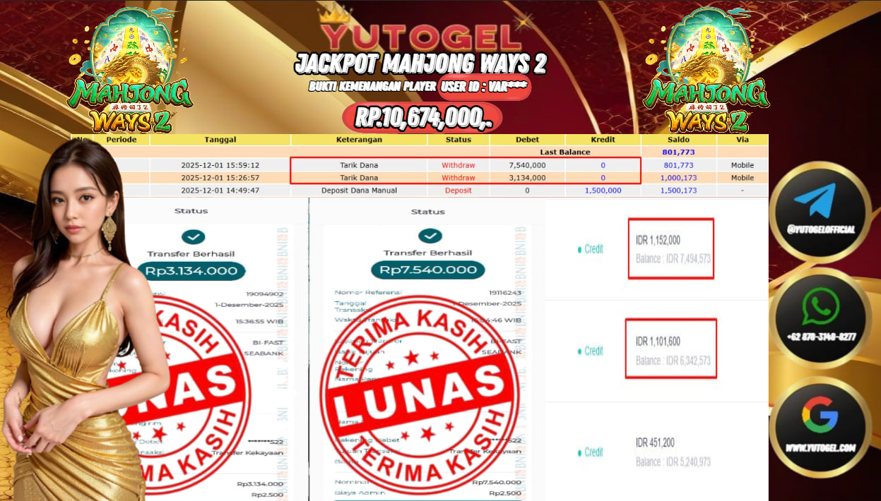 Selamat kepada User id : VAR*** Bukti Pembayaran Kemenangan 10.674,000 permainan SLOT PG SOFT USER ID : VAR*** LUNAS!!! Telah berhasil mendapatkan kemenangan besar pada JACKPOT PERMAINAN PG SOFT , RP 10.674,000,- LUNAS . Setelah mengisi formulir withdraw dengan kurung waktu hanya 5 – 10 menit pihak YUTOGEL sudah melakukan transfer kepada pemilik User id dan dana sudah dapat dicairkan oleh pemenang. Bukti pembayaran yang kami berikan merupakan bukti pembayaran yang SAH/VALID yang langsung di dapatkan melalui tanda transfer transaksi dari Bank yang dituju.