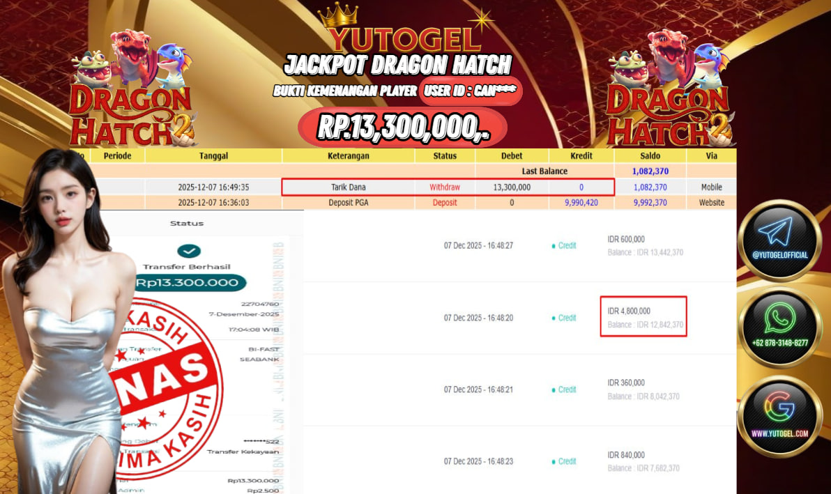 Selamat kepada User id : CAN**** Bukti Pembayaran Kemenangan 13.300,000 permainan SLOT PG SOFT USER ID : CAN**** LUNAS!!! Telah berhasil mendapatkan kemenangan besar pada JACKPOT PERMAINAN PG SOFT , RP 13.300,000,- LUNAS . Setelah mengisi formulir withdraw dengan kurung waktu hanya 5 – 10 menit pihak YUTOGEL sudah melakukan transfer kepada pemilik User id dan dana sudah dapat dicairkan oleh pemenang. Bukti pembayaran yang kami berikan merupakan bukti pembayaran yang SAH/VALID yang langsung di dapatkan melalui tanda transfer transaksi dari Bank yang dituju.