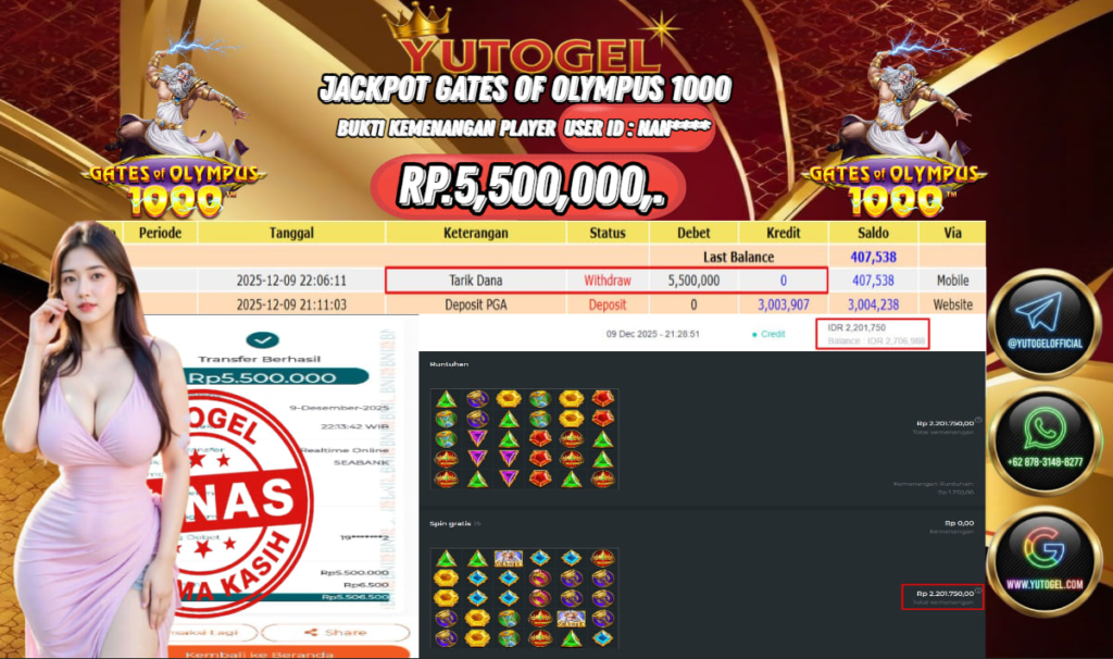 Selamat kepada User id : NAN*** Bukti Pembayaran Kemenangan 5.500,000 permainan SLOT PRAGMATIC PLAY USER ID : NAN*** LUNAS!!! Telah berhasil mendapatkan kemenangan besar pada JACKPOT PERMAINAN PRAGMATIC PLAY , RP 5.500,000,- LUNAS . Setelah mengisi formulir withdraw dengan kurung waktu hanya 5 – 10 menit pihak YUTOGEL sudah melakukan transfer kepada pemilik User id dan dana sudah dapat dicairkan oleh pemenang. Bukti pembayaran yang kami berikan merupakan bukti pembayaran yang SAH/VALID yang langsung di dapatkan melalui tanda transfer transaksi dari Bank yang dituju.