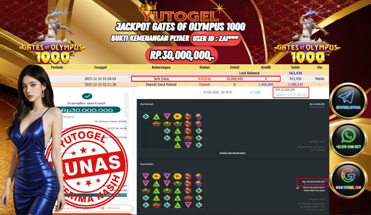 Selamat kepada User id : ZAI*** Bukti Pembayaran Kemenangan 30.000,000 permainan SLOT PRAGMATIC PLAY USER ID : ZAI*** LUNAS!!! Telah berhasil mendapatkan kemenangan besar pada JACKPOT PERMAINAN PRAGMATIC PLAY , RP 30.000,000,- LUNAS . Setelah mengisi formulir withdraw dengan kurung waktu hanya 5 – 10 menit pihak YUTOGEL sudah melakukan transfer kepada pemilik User id dan dana sudah dapat dicairkan oleh pemenang. Bukti pembayaran yang kami berikan merupakan bukti pembayaran yang SAH/VALID yang langsung di dapatkan melalui tanda transfer transaksi dari Bank yang dituju.