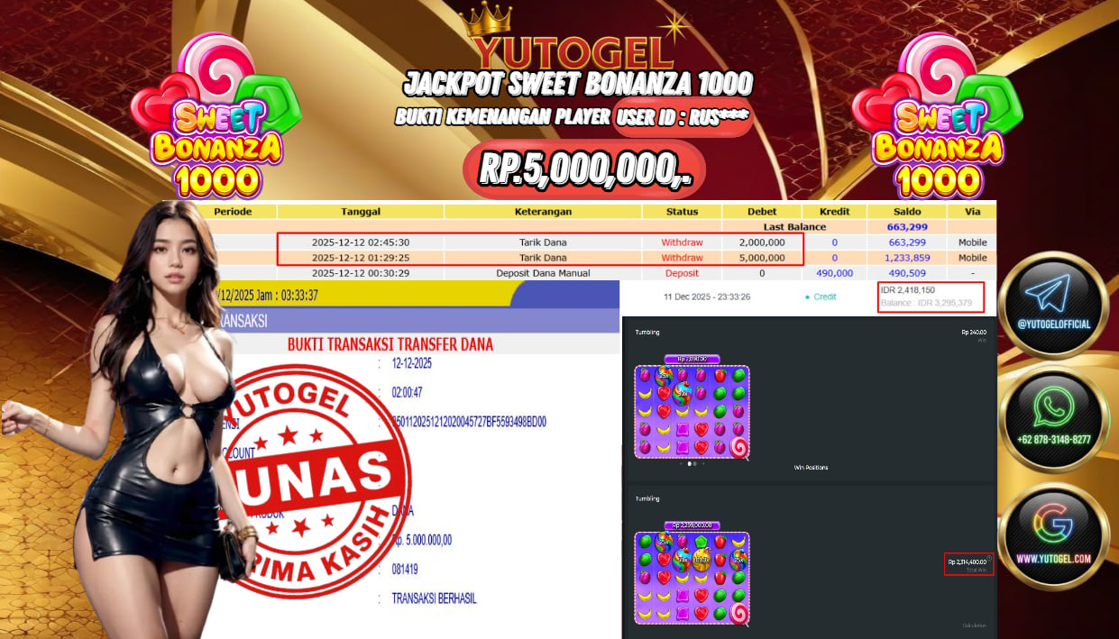Selamat kepada User id : RUS*** Bukti Pembayaran Kemenangan 5.000,000,. permainan SLOT PRAGMATIC PLAY USER ID : RUS*** LUNAS!!! Telah berhasil mendapatkan kemenangan besar pada JACKPOT PERMAINAN PRAGMATIC PLAY , RP 5.000,000,- LUNAS . Setelah mengisi formulir withdraw dengan kurung waktu hanya 5 – 10 menit pihak YUTOGEL sudah melakukan transfer kepada pemilik User id dan dana sudah dapat dicairkan oleh pemenang. Bukti pembayaran yang kami berikan merupakan bukti pembayaran yang SAH/VALID yang langsung di dapatkan melalui tanda transfer transaksi dari Bank yang dituju.