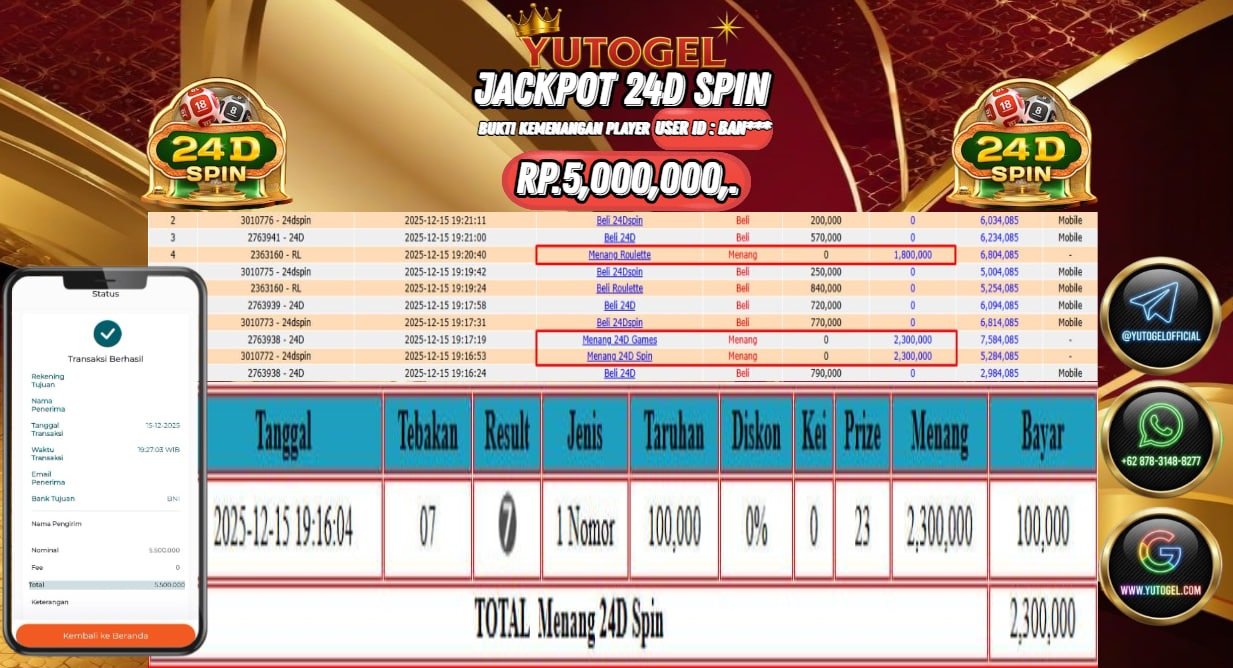 Selamat kepada User id : BAN**** Telah berhasil mendapatkan kemenangan besar pada JACKPOT PERMAINAN LIVE GAME , RP. 5,500,000 ,- LUNAS . Setelah mengisi formulir withdraw dengan kurung waktu hanya 5 – 10 menit pihak YUTOGEL sudah melakukan transfer kepada pemilik Userid dan dana sudah dapat dicairkan oleh pemenang. Bukti pembayaran yang kami berikan merupakan bukti pembayaran yang SAH/VALID yang langsung di dapatkan melalui tanda transfer transaksi dari Bank yang dituju.