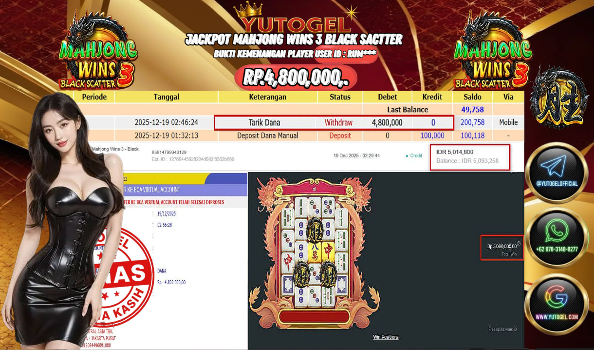Selamat kepada USER ID : RUM*** Telah berhasil mendapatkan kemenangan besar pada YUTOGEL JACKPOT SLOT PRAGMATIC PLAY MAHJONG WINS 3 – BLACK SCATTER RP. 4.800.000,. – LUNAS. Setelah mengisi formulir withdraw dengan kurung waktu hanya 5 – 10 menit pihak sudah melakukan transfer kepada pemilik Userid dan dana sudah dapat dicairkan oleh pemenang. Bukti pembayaran yang kami berikan merupakan bukti pembayaran yang SAH/VALID yang langsung di dapatkan melalui tanda transfer transaksi dari Bank yang dituju.