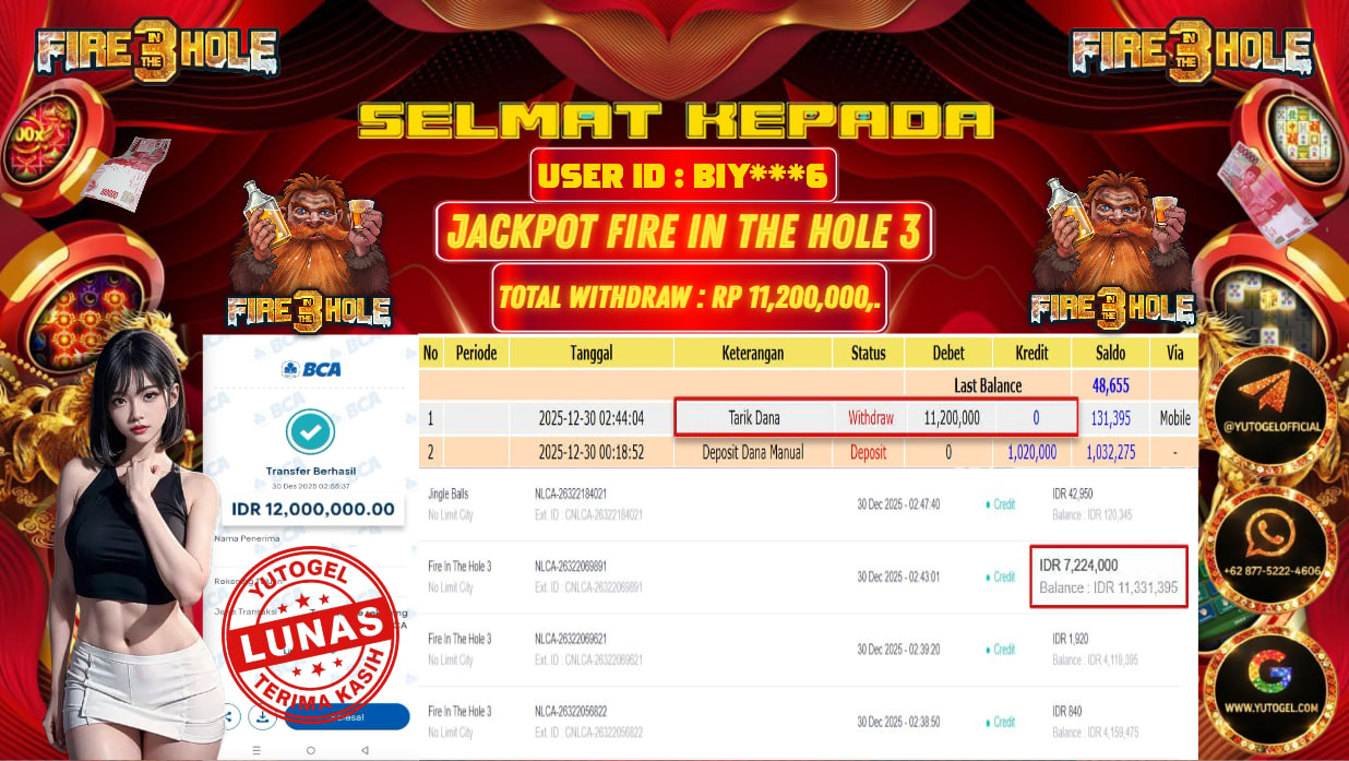 Selamat kepada USER ID : BIY***6 Telah berhasil mendapatkan kemenangan besar pada YUTOGEL JACKPOT SLOT NOLIMIT CITY – FIRE IN THE HOLE 3 RP. 11.200.000,. – LUNAS. Setelah mengisi formulir withdraw dengan kurung waktu hanya 5 – 10 menit pihak sudah melakukan transfer kepada pemilik Userid dan dana sudah dapat dicairkan oleh pemenang. Bukti pembayaran yang kami berikan merupakan bukti pembayaran yang SAH/VALID yang langsung di dapatkan melalui tanda transfer transaksi dari Bank yang dituju.