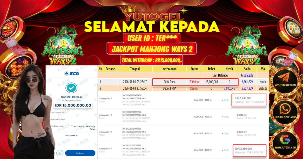 Selamat kepada USER ID : TER*** Telah berhasil mendapatkan kemenangan besar pada YUTOGEL JACKPOT SLOT PGSOFT MAHJONG 2 WAYS RP. 15.000.000,. – LUNAS. Setelah mengisi formulir withdraw dengan kurung waktu hanya 5 – 10 menit pihak sudah melakukan transfer kepada pemilik User id dan dana sudah dapat dicairkan oleh pemenang. Bukti pembayaran yang kami berikan merupakan bukti pembayaran yang SAH/VALID yang langsung di dapatkan melalui tanda transfer transaksi dari Bank yang dituju.