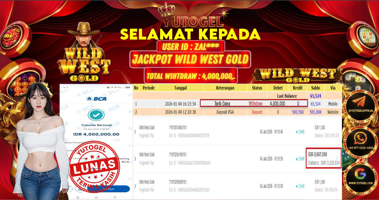 Selamat kepada USER ID : ZAL*** Telah berhasil mendapatkan kemenangan besar pada YUTOGEL JACKPOT SLOT PRAGMATIC WILD WEST GOLD RP. 4.000.000,. – LUNAS. Setelah mengisi formulir withdraw dengan kurung waktu hanya 5 – 10 menit pihak sudah melakukan transfer kepada pemilik User id dan dana sudah dapat dicairkan oleh pemenang. Bukti pembayaran yang kami berikan merupakan bukti pembayaran yang SAH/VALID yang langsung di dapatkan melalui tanda transfer transaksi dari Bank yang dituju.