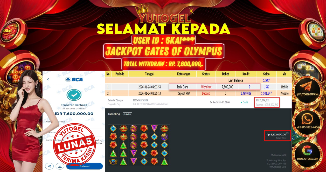 Selamat kepada USER ID : 6KAI*** Telah berhasil mendapatkan kemenangan besar pada YUTOGEL JACKPOT SLOT PRAGMATIC PLAY GATES OF OLYMPUS RP. 7.600.000,. – LUNAS. Setelah mengisi formulir withdraw dengan kurung waktu hanya 5 – 10 menit pihak sudah melakukan transfer kepada pemilik User id dan dana sudah dapat dicairkan oleh pemenang. Bukti pembayaran yang kami berikan merupakan bukti pembayaran yang SAH/VALID yang langsung di dapatkan melalui tanda transfer transaksi dari Bank yang dituju.