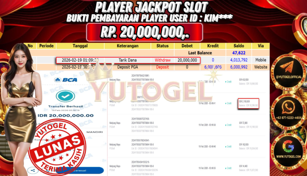 Selamat kepada USER ID : KIM*** Telah berhasil mendapatkan kemenangan besar pada YUTOGEL JACKPOT PG SHOFT MAHJONG WAYS RP. 20.000.000,. – LUNAS. Setelah mengisi formulir withdraw dengan kurung waktu hanya 5 – 10 menit pihak sudah melakukan transfer kepada pemilik User id dan dana sudah dapat dicairkan oleh pemenang. Bukti pembayaran yang kami berikan merupakan bukti pembayaran yang SAH/VALID yang langsung di dapatkan melalui tanda transfer transaksi dari Bank yang dituju.