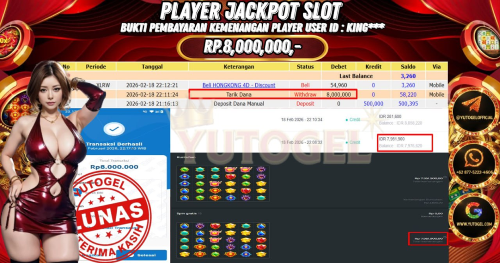 Selamat kepada USER ID : KING*** Telah berhasil mendapatkan kemenangan besar pada YUTOGEL JACKPOT PRAGMATIC PLAY STARLIGHT PRINCESS 1000 RP. 8.000.000,. – LUNAS. Setelah mengisi formulir withdraw dengan kurung waktu hanya 5 – 10 menit pihak sudah melakukan transfer kepada pemilik User id dan dana sudah dapat dicairkan oleh pemenang. Bukti pembayaran yang kami berikan merupakan bukti pembayaran yang SAH/VALID yang langsung di dapatkan melalui tanda transfer transaksi dari Bank yang dituju.