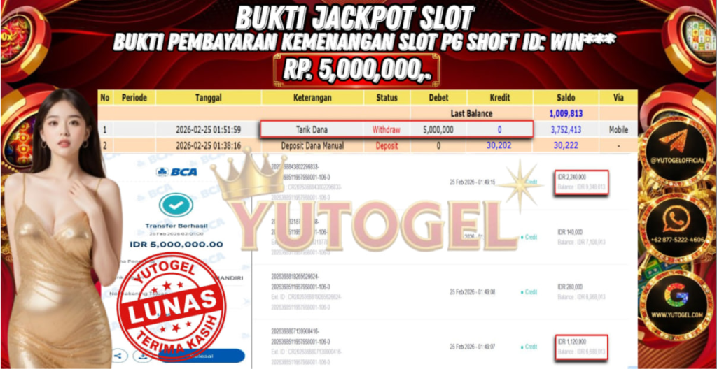 Selamat kepada USER ID : WIN*** Telah berhasil mendapatkan kemenangan besar pada YUTOGEL JACKPOT PG SHOFT LUCKY NECKO RP. 5.000.000,. – LUNAS. Setelah mengisi formulir withdraw dengan kurung waktu hanya 5 – 10 menit pihak  sudah melakukan transfer kepada pemilik User id dan dana sudah dapat dicairkan oleh pemenang. Bukti pembayaran yang kami berikan merupakan bukti pembayaran yang SAH/VALID yang langsung di dapatkan melalui tanda transfer transaksi dari Bank yang dituju.