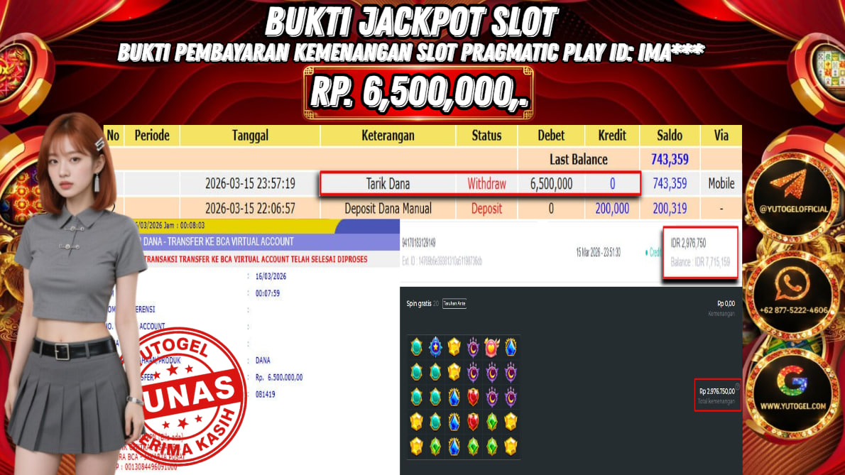 Selamat kepada USER ID : IMA*** Telah berhasil mendapatkan kemenangan besar pada YUTOGEL JACKPOT PRAGMATIC PLAY STARLIGHT PRINCES SUPER SCATER RP. 6.500.000,. – LUNAS. Setelah mengisi formulir withdraw dengan kurung waktu hanya 5 – 10 menit pihak sudah melakukan transfer kepada pemilik User id dan dana sudah dapat dicairkan oleh pemenang. Bukti pembayaran yang kami berikan merupakan bukti pembayaran yang SAH/VALID yang langsung di dapatkan melalui tanda transfer transaksi dari Bank yang dituju.