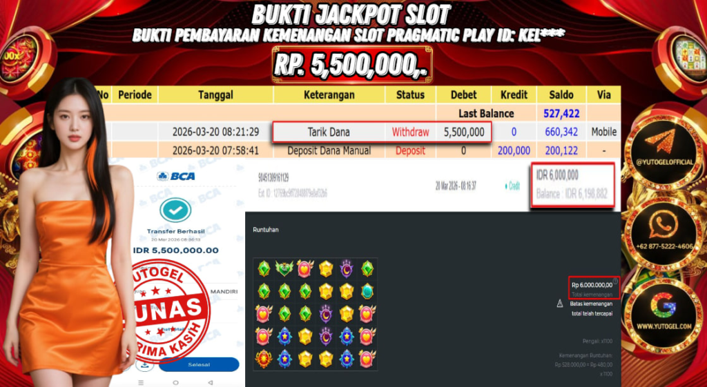 Selamat kepada USER ID : KEL*** Telah berhasil mendapatkan kemenangan besar pada YUTOGEL JACKPOT PRAGMATIC PLAY STARLIGHT PRINCES SUPER SCATER RP. 5.500.000,. – LUNAS. Setelah mengisi formulir withdraw dengan kurung waktu hanya 5 – 10 menit pihak sudah melakukan transfer kepada pemilik User id dan dana sudah dapat dicairkan oleh pemenang. Bukti pembayaran yang kami berikan merupakan bukti pembayaran yang SAH/VALID yang langsung di dapatkan melalui tanda transfer transaksi dari Bank yang dituju.