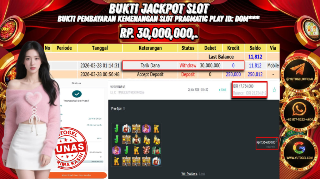 Selamat kepada USER ID : DOM*** Telah berhasil mendapatkan kemenangan besar pada YUTOGEL JACKPOT PRAGMATIC PLAY WILD WEST GOLD RP. 30.000.000,. – LUNAS. Setelah mengisi formulir withdraw dengan kurung waktu hanya 5 – 10 menit pihak sudah melakukan transfer kepada pemilik User id dan dana sudah dapat dicairkan oleh pemenang. Bukti pembayaran yang kami berikan merupakan bukti pembayaran yang SAH/VALID yang langsung di dapatkan melalui tanda transfer transaksi dari Bank yang dituju.
