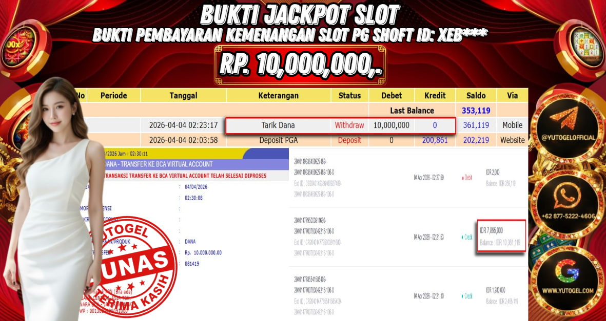 Selamat kepada USER ID : XEB*** Telah berhasil mendapatkan kemenangan besar pada YUTOGEL JACKPOT PG SHOFT MAHJONG WAYS RP. 10.000.000,. – LUNAS. Setelah mengisi formulir withdraw dengan kurung waktu hanya 5 – 10 menit pihak sudah melakukan transfer kepada pemilik User id dan dana sudah dapat dicairkan oleh pemenang. Bukti pembayaran yang kami berikan merupakan bukti pembayaran yang SAH/VALID yang langsung di dapatkan melalui tanda transfer transaksi dari Bank yang dituju.