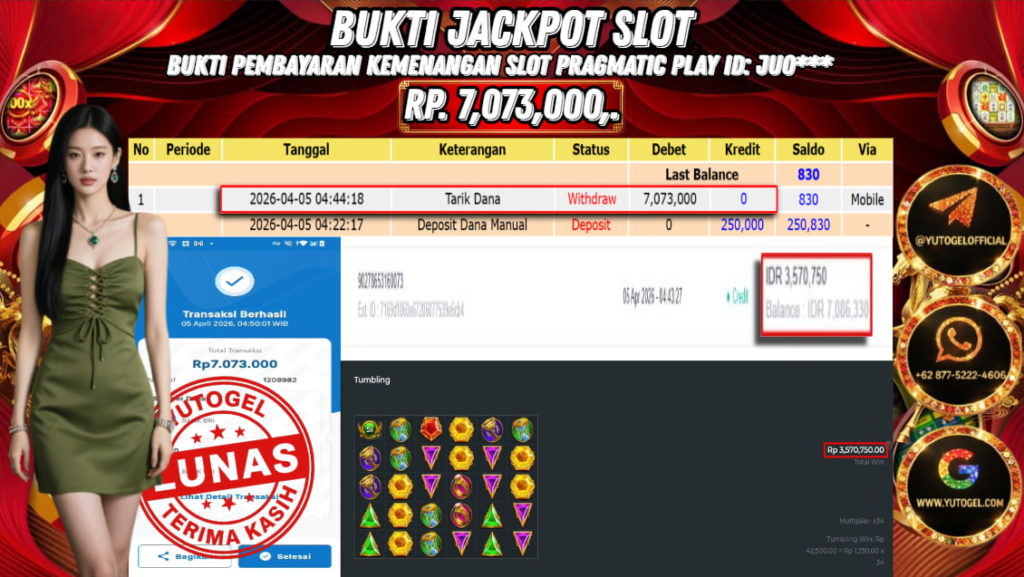 Selamat kepada USER ID : JUO*** Telah berhasil mendapatkan kemenangan besar pada YUTOGEL JACKPOT PRAGMATIC PLAY GATES OF OLYMPUS RP. 7.073.000,. – LUNAS. Setelah mengisi formulir withdraw dengan kurung waktu hanya 5 – 10 menit pihak sudah melakukan transfer kepada pemilik User id dan dana sudah dapat dicairkan oleh pemenang. Bukti pembayaran yang kami berikan merupakan bukti pembayaran yang SAH/VALID yang langsung di dapatkan melalui tanda transfer transaksi dari Bank yang dituju.