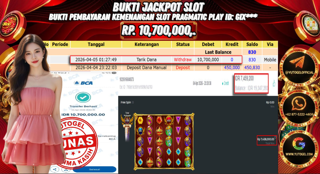 Selamat kepada USER ID : GIX*** Telah berhasil mendapatkan kemenangan besar pada YUTOGEL JACKPOT PRAGMATIC PLAY GATES OF OLYMPUS1000 RP. 10.700.000,. – LUNAS. Setelah mengisi formulir withdraw dengan kurung waktu hanya 5 – 10 menit pihak  sudah melakukan transfer kepada pemilik User id dan dana sudah dapat dicairkan oleh pemenang. Bukti pembayaran yang kami berikan merupakan bukti pembayaran yang SAH/VALID yang langsung di dapatkan melalui tanda transfer transaksi dari Bank yang dituju.