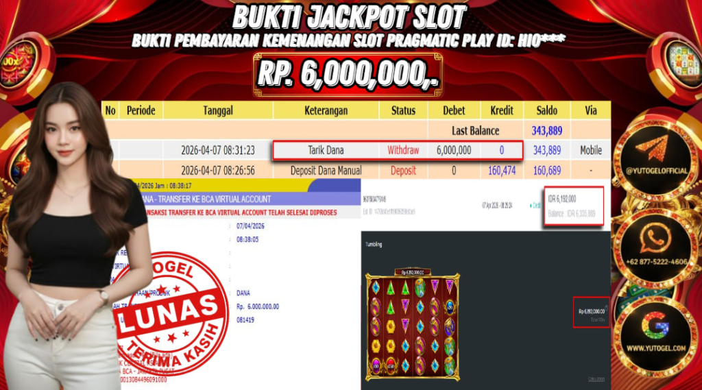 Selamat kepada USER ID : HIO*** Telah berhasil mendapatkan kemenangan besar pada YUTOGEL JACKPOT PRAGMATIC PLAY GATES OF OLYMPUS RP. 6.000.000,. – LUNAS. Setelah mengisi formulir withdraw dengan kurung waktu hanya 5 – 10 menit pihak  sudah melakukan transfer kepada pemilik User id dan dana sudah dapat dicairkan oleh pemenang. Bukti pembayaran yang kami berikan merupakan bukti pembayaran yang SAH/VALID yang langsung di dapatkan melalui tanda transfer transaksi dari Bank yang dituju.