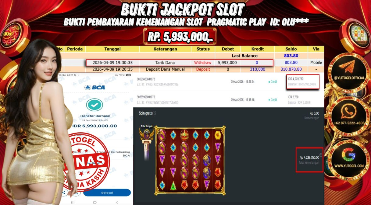 Selamat kepada USER ID : OLU*** Telah berhasil mendapatkan kemenangan besar pada YUTOGEL JACKPOT PRAGMATIC PLAY GATES OF OLYMPUS1000 RP. 5.993.000,. – LUNAS. Setelah mengisi formulir withdraw dengan kurung waktu hanya 5 – 10 menit pihak  sudah melakukan transfer kepada pemilik User id dan dana sudah dapat dicairkan oleh pemenang. Bukti pembayaran yang kami berikan merupakan bukti pembayaran yang SAH/VALID yang langsung di dapatkan melalui tanda transfer transaksi dari Bank yang dituju.
