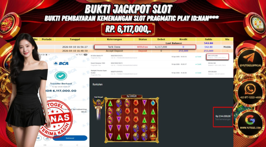 Selamat kepada USER ID : NAN*** Telah berhasil mendapatkan kemenangan besar pada YUTOGEL JACKPOT PRAGMATIC PLAY GATES OF OLYMPUS1000 RP. 6.117.000,. – LUNAS. Setelah mengisi formulir withdraw dengan kurung waktu hanya 5 – 10 menit pihak  sudah melakukan transfer kepada pemilik User id dan dana sudah dapat dicairkan oleh pemenang. Bukti pembayaran yang kami berikan merupakan bukti pembayaran yang SAH/VALID yang langsung di dapatkan melalui tanda transfer transaksi dari Bank yang dituju.