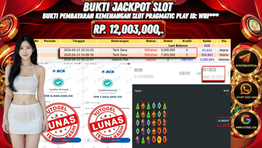 Selamat kepada USER ID : WHI*** Telah berhasil mendapatkan kemenangan besar pada YUTOGEL JACKPOT PRAGMATIC PLAY GATES OF OLYMPUS1000 RP. 12.003.000,. – LUNAS. Setelah mengisi formulir withdraw dengan kurung waktu hanya 5 – 10 menit pihak sudah melakukan transfer kepada pemilik User id dan dana sudah dapat dicairkan oleh pemenang. Bukti pembayaran yang kami berikan merupakan bukti pembayaran yang SAH/VALID yang langsung di dapatkan melalui tanda transfer transaksi dari Bank yang dituju.