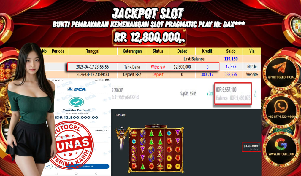 Selamat kepada USER ID : DAX*** Telah berhasil mendapatkan kemenangan besar pada YUTOGEL JACKPOT PRAGMATIC PLAY GATES OF OLYMPUS1000 RP. 12.800.000,. – LUNAS. Setelah mengisi formulir withdraw dengan kurung waktu hanya 5 – 10 menit pihak sudah melakukan transfer kepada pemilik User id dan dana sudah dapat dicairkan oleh pemenang. Bukti pembayaran yang kami berikan merupakan bukti pembayaran yang SAH/VALID yang langsung di dapatkan melalui tanda transfer transaksi dari Bank yang dituju.