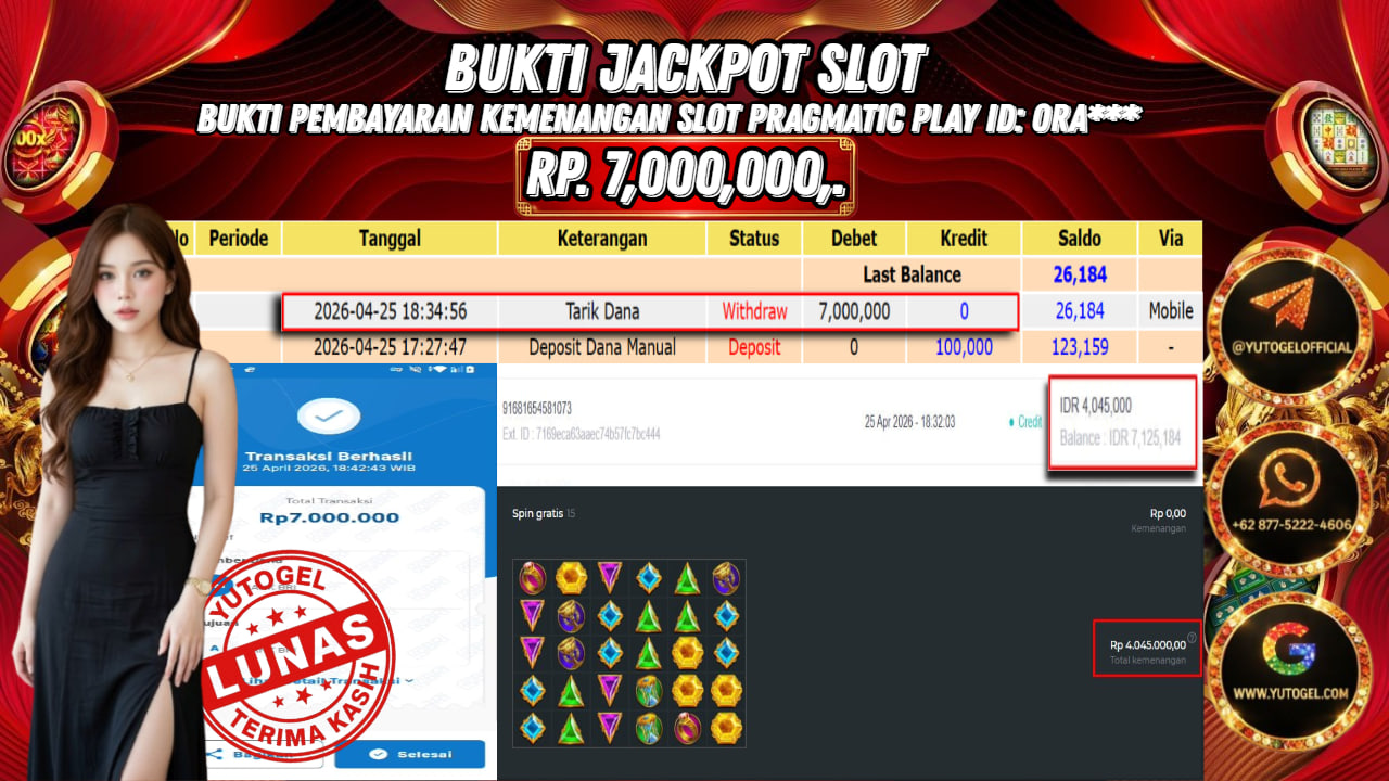 Selamat kepada USER ID : ORA*** Telah berhasil mendapatkan kemenangan besar pada YUTOGEL JACKPOT PRAGMATIC PLAY GATES OF OLYMPUS1000 RP. 7.000.000,. – LUNAS. Setelah mengisi formulir withdraw dengan kurung waktu hanya 5 – 10 menit pihak sudah melakukan transfer kepada pemilik User id dan dana sudah dapat dicairkan oleh pemenang. Bukti pembayaran yang kami berikan merupakan bukti pembayaran yang SAH/VALID yang langsung di dapatkan melalui tanda transfer transaksi dari Bank yang dituju.